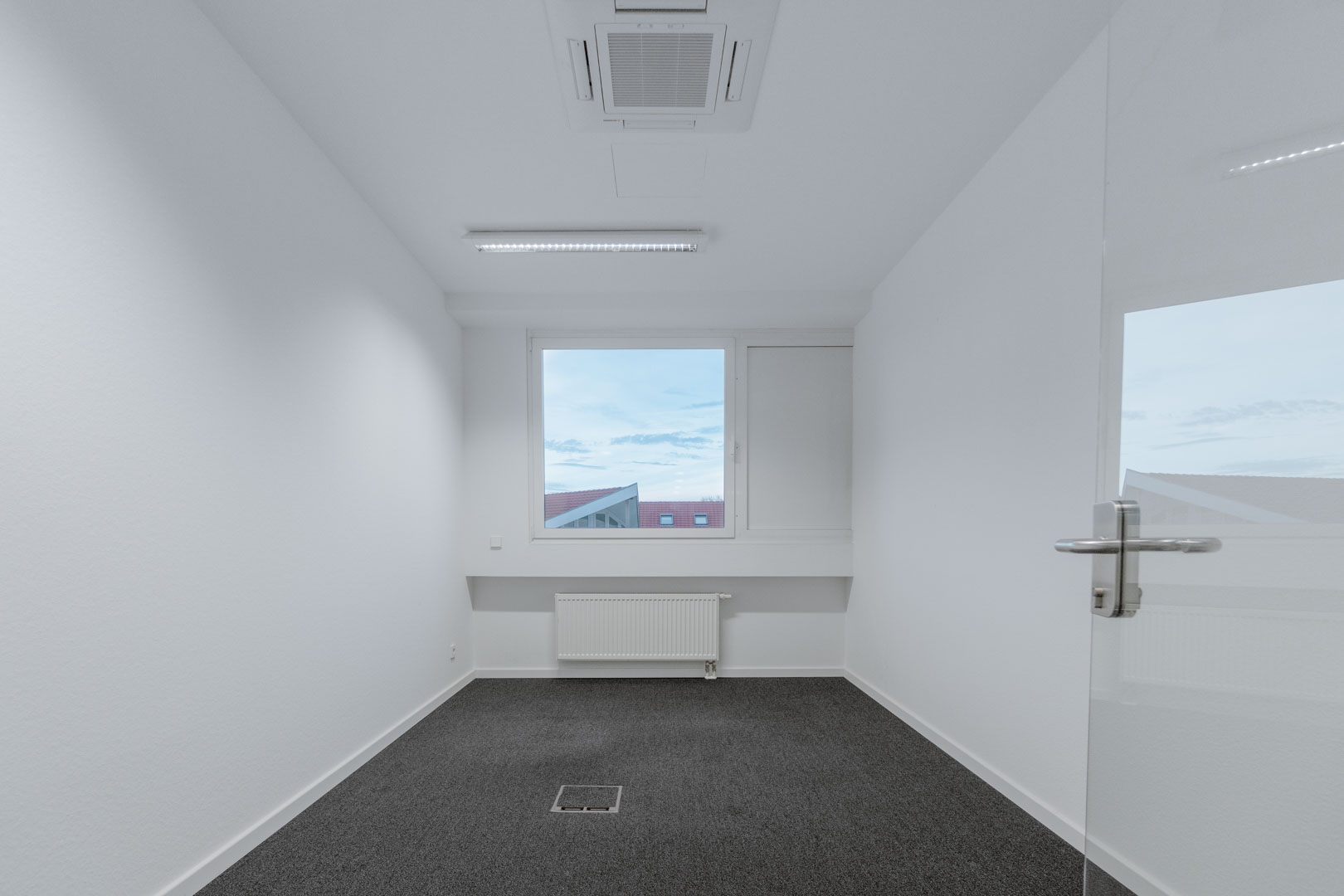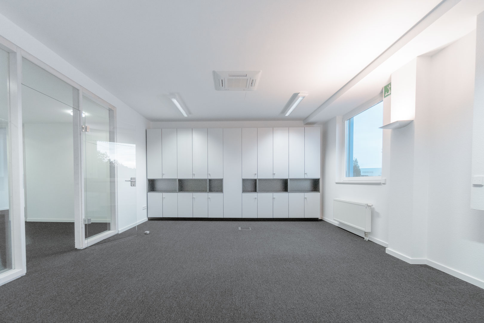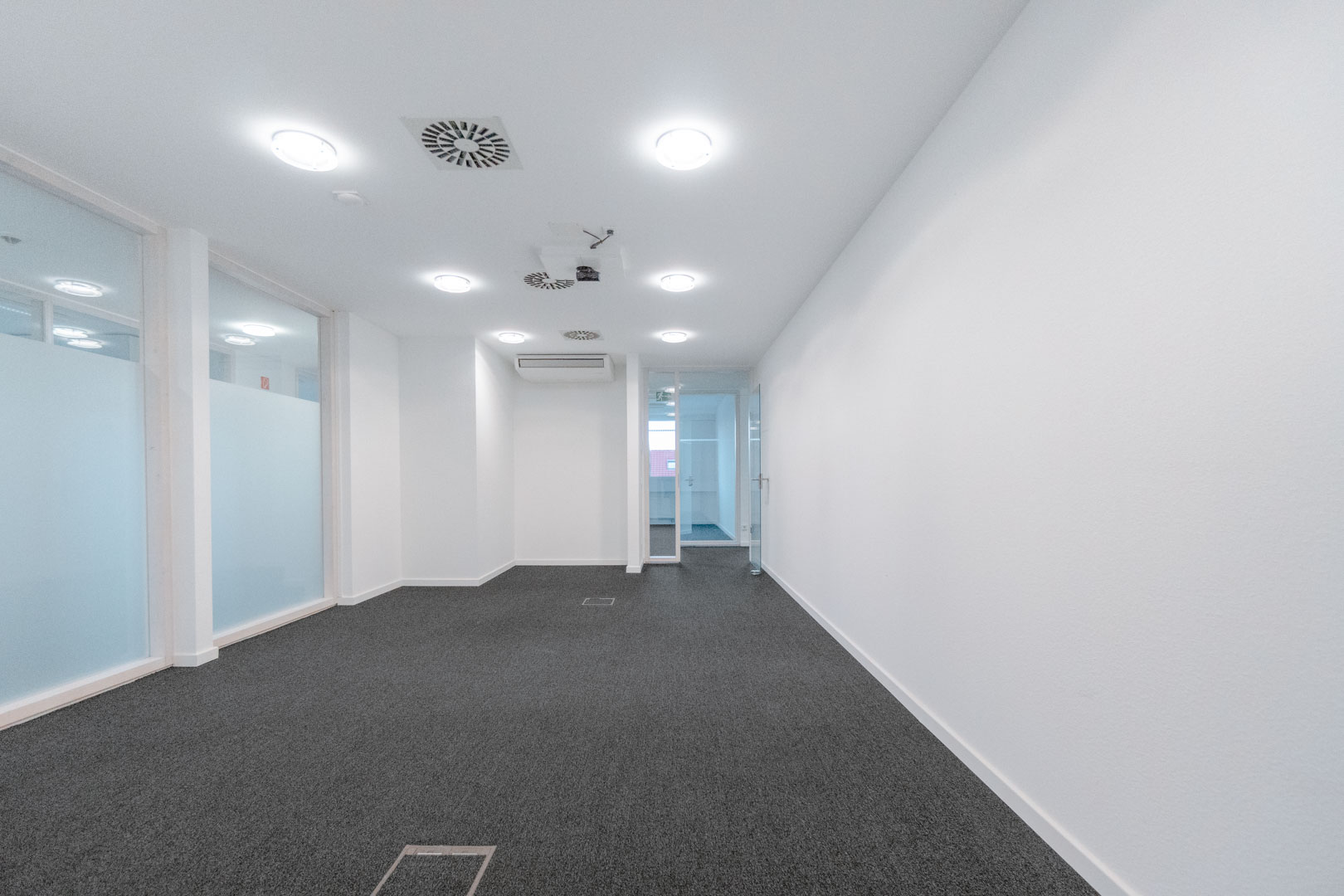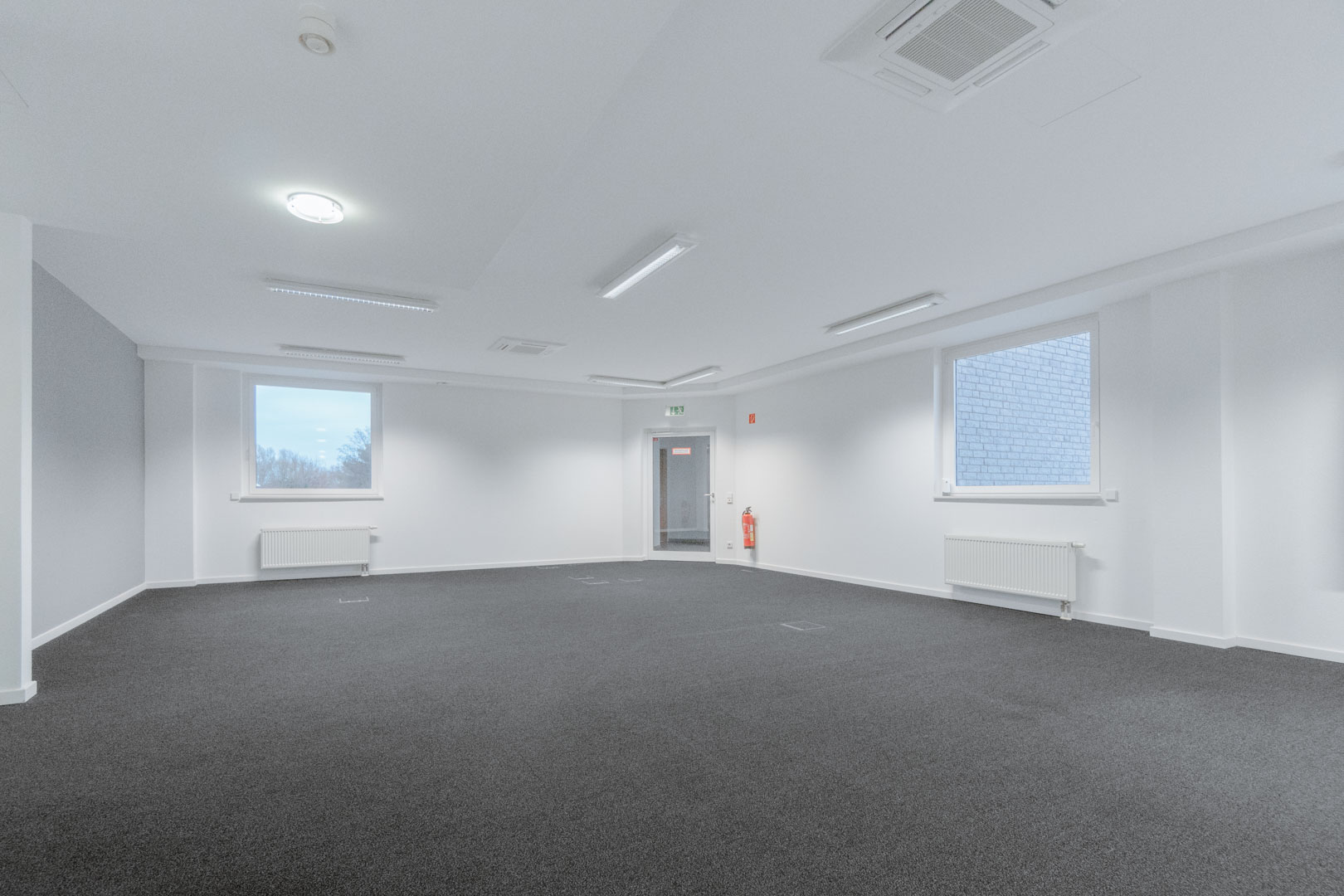 Der aktuell vorhandene Teppichboden ist mit einer Vielzahl an Bodentanks ausgestattet, was eine flexible Anordnung von Arbeitsplätzen ermöglicht. Leuchtmittel sind bereits installiert.