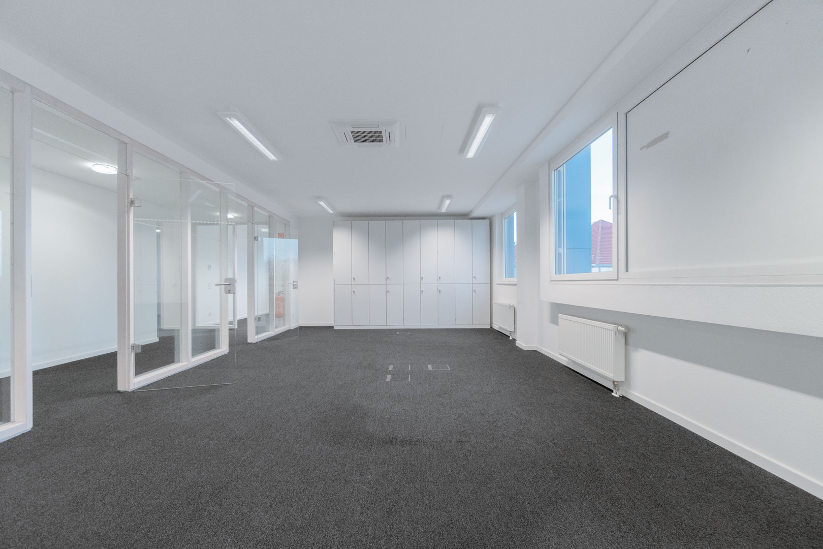Ein zusätzlicher Archivraum ist ebenfalls vorhanden. Die Etage ist klimatisiert. Durch die großflächigen Fenster gelangt viel Tageslicht in die Fläche.