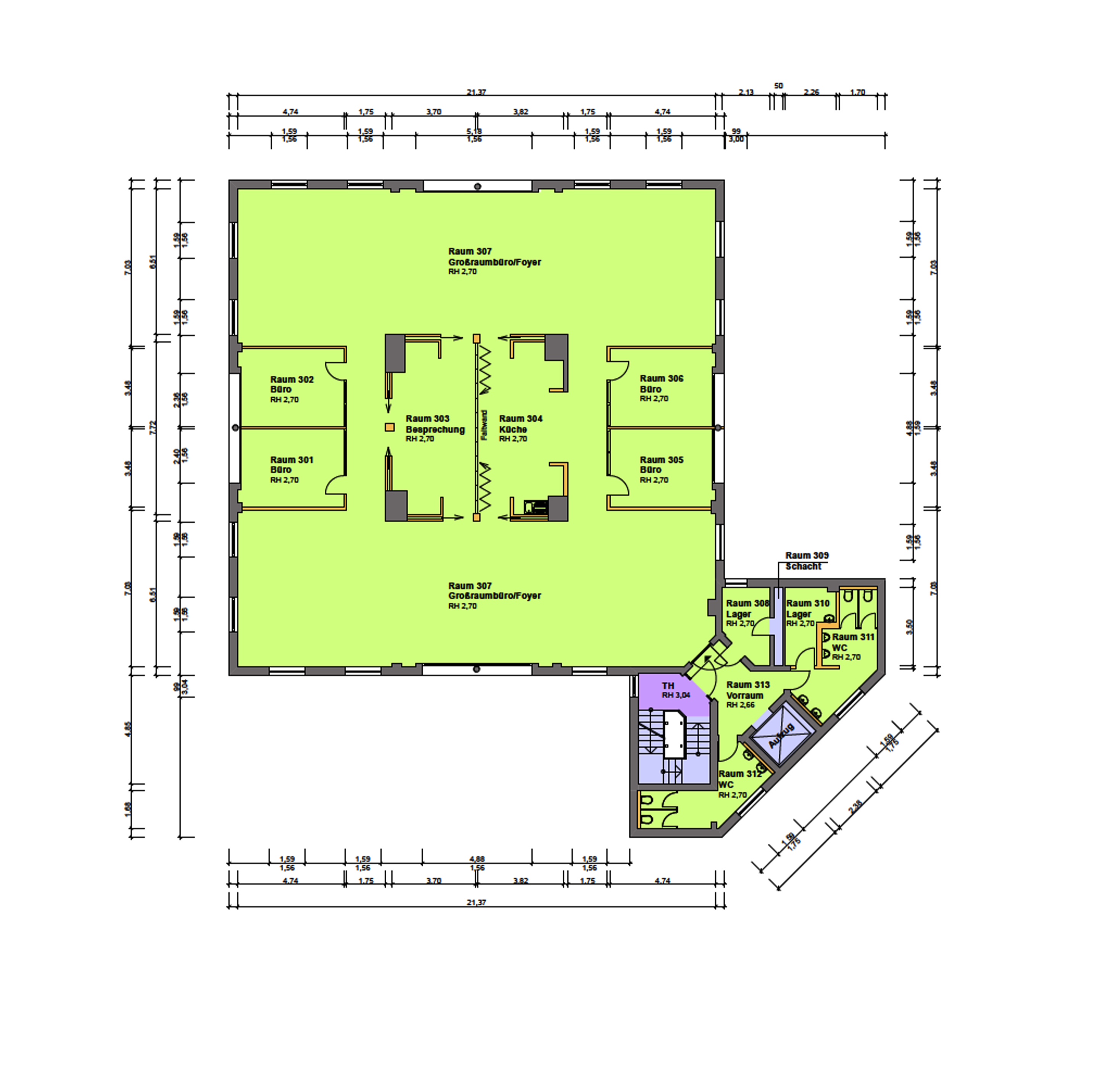 • Besprechungsraum (mittig veränderbar).