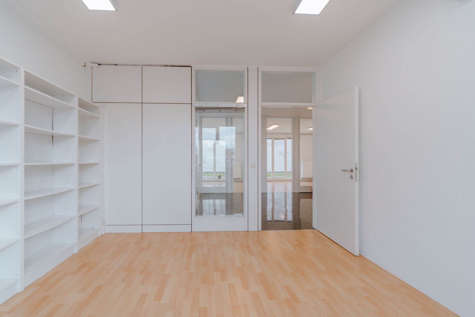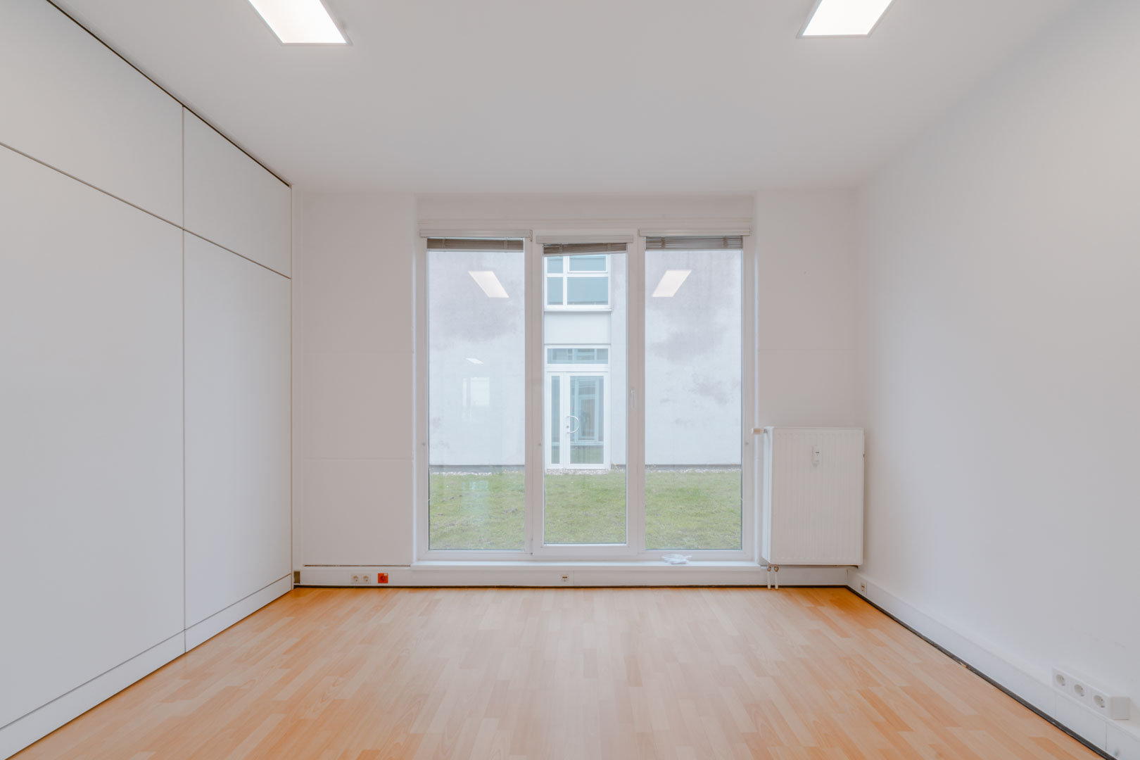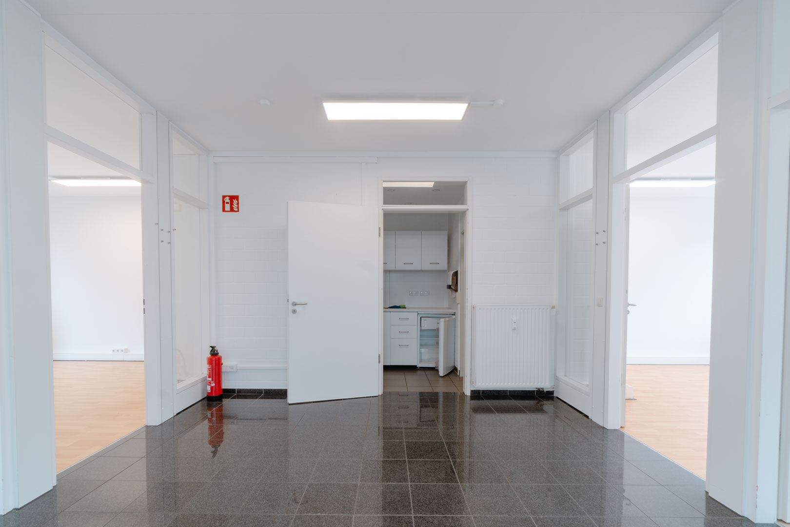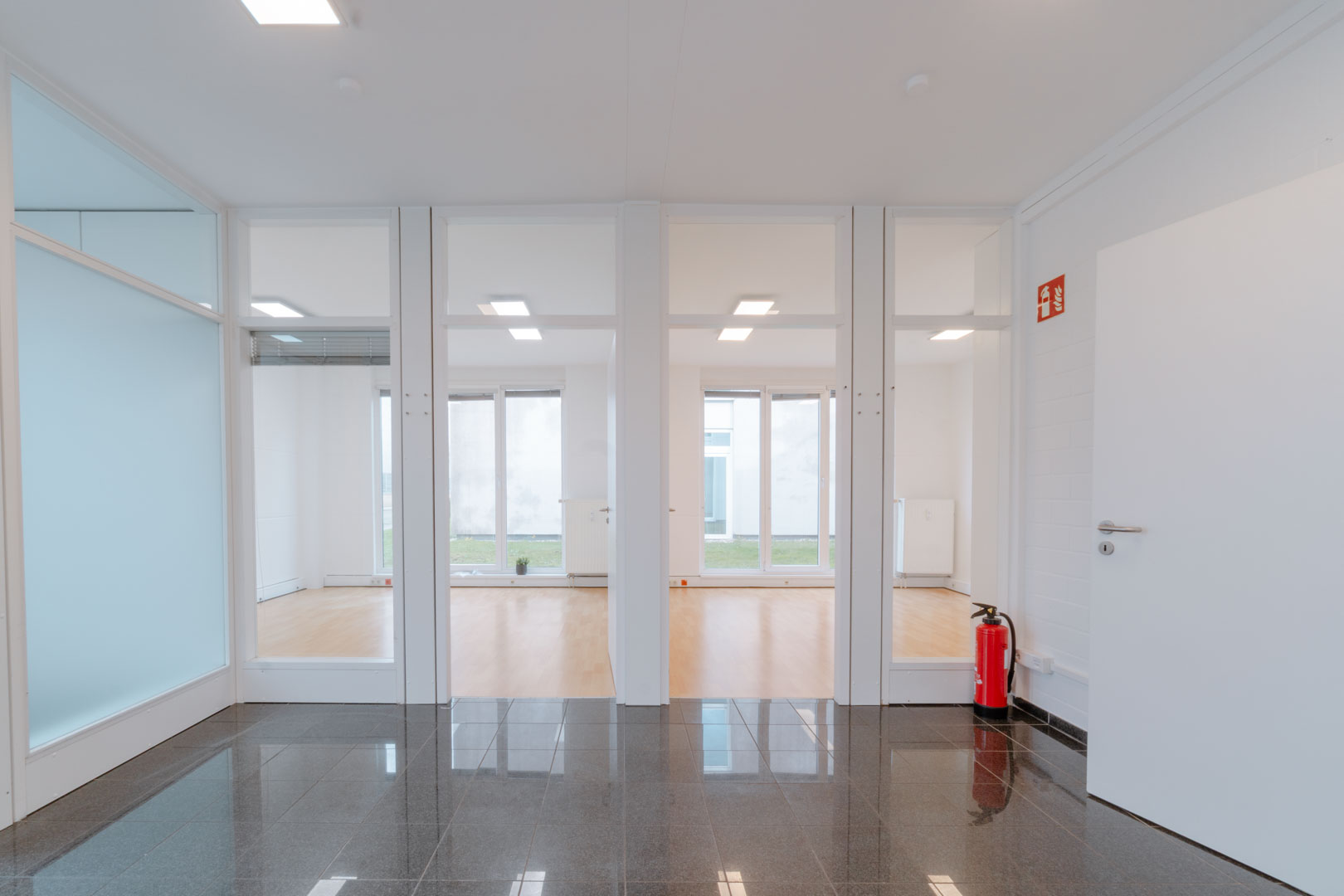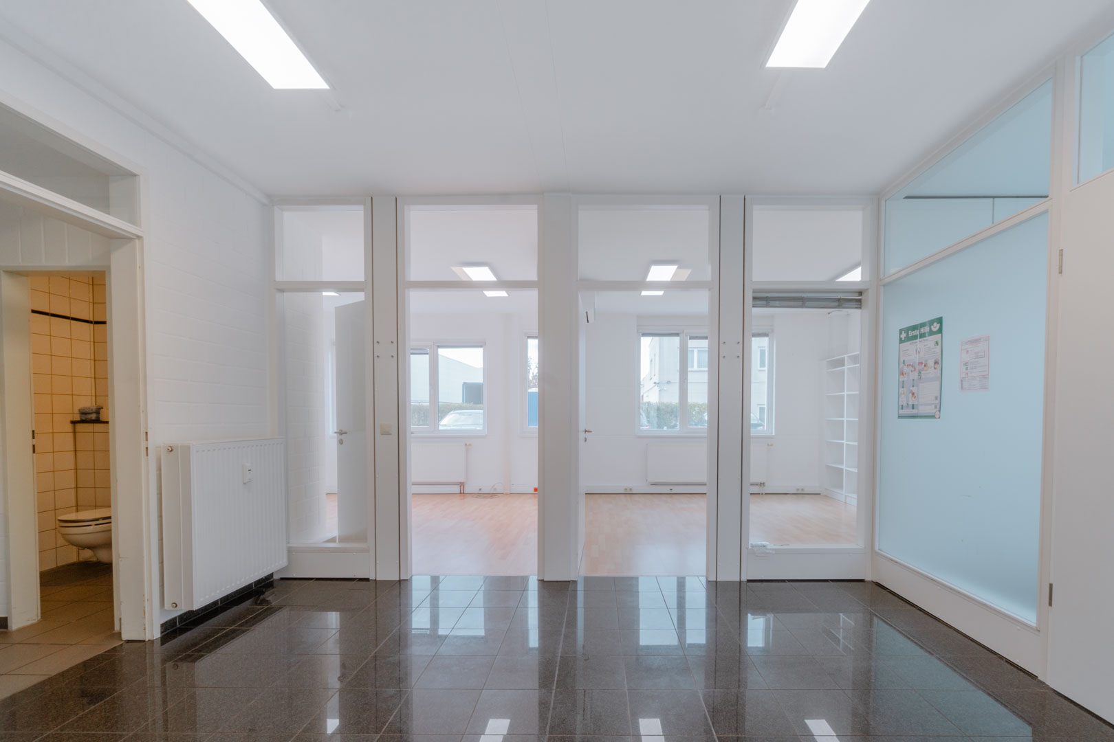 Die angebotene Bürofläche umfasst ca. 105 m² und überzeugt durch eine praktische, nahezu quadratische Raumaufteilung. Beim Betreten gelangen Sie zunächst in einen kleinen Dielenbereich, der sich ideal als Garderobe eignet. Daran anschließend befindet sich der großzügige Empfangsbereich, von dem aus vier abschließbare Büroräume zugänglich sind. Zwei der Büros sind klimatisiert und zwei Büros verfügen über bodentiefe Fenster, die für eine helle und angenehme Arbeitsatmosphäre sorgen.