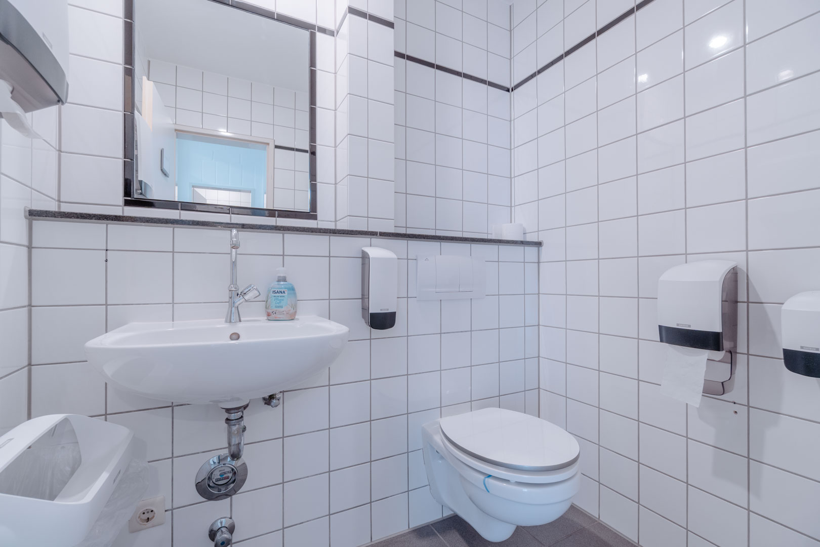 Die Einheit ist mit einer Teeküche inklusive Kühlschrank ausgestattet sowie mit zwei getrennten WCs für Damen und Herren. Eine moderne Datenverkabelung ist vorhanden. Beheizt wird die Fläche über eine Gaszentralheizung, die Beleuchtung erfolgt über energieeffiziente LED-Leuchtmittel.