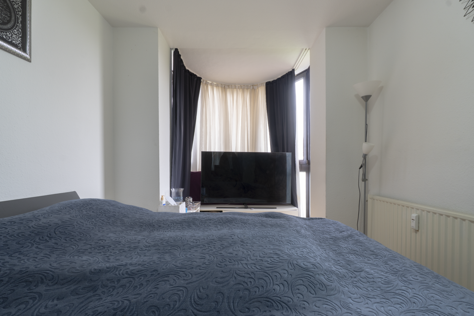 Das Schlafzimmer verfügt über einen erkerartigen Fassadenvorsprung mit zusätzlichen Fensterflächen. Dadurch entsteht eine gute natürliche Belichtung und eine helle, offene Raumwirkung. Der vorspringende Bereich eignet sich beispielsweise für eine kleine Arbeits- oder Lesezone.